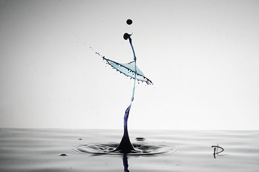 Own this fleeting moment of dynamic grace. "Azure Pirouette" is perfect for those who appreciate art suggesting movement, complex abstract compositions, and the intricate beauty unveiled by high-speed photography. It makes an engaging gift for lovers of dance, celestial forms, or unique and energetic visuals.